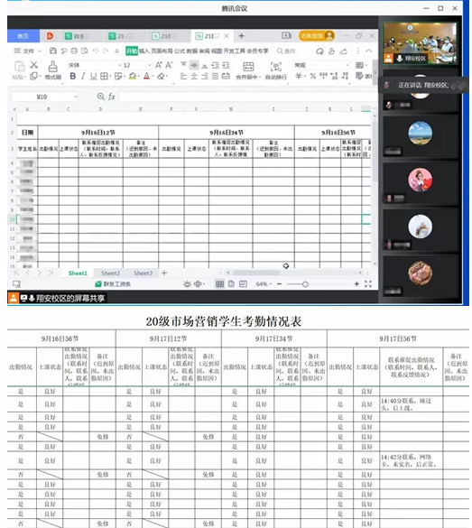 加强课堂教学管理,规范线上课堂教学秩序,严格考勤。学生出勤数据同步录入学院教务系统,学生在线学习情况纳入平时考核范畴。每个班级配备一名行政老师作为“副班主任”,配合辅导员跟进班级每一位学生情况。对于没有上线听课的同学,“副班主任”利用电话、微信、QQ等方式单独通知,督促学生尽快上线听课。此外,“副班主任”建立了学生档案,根据班级课表,深入课堂听课,每日形成一个班级情况反馈表,及时反馈学生上课及在校情况,确保学生情况落实跟踪到位。