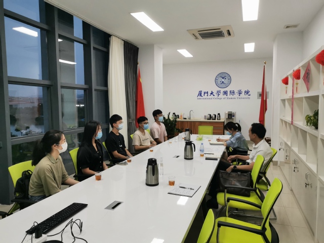 2021年9月17日下午,厦门大学学生工作处处长李峰莅临我院调研工作,并在二号楼C303会议室召开都柏林项目毕业班学生干部座谈会。我院党委副书记陈向柳,团委书记、2018级学生辅导员邹文菁以及2018级毕业班班长、团支书参加了座谈会。
