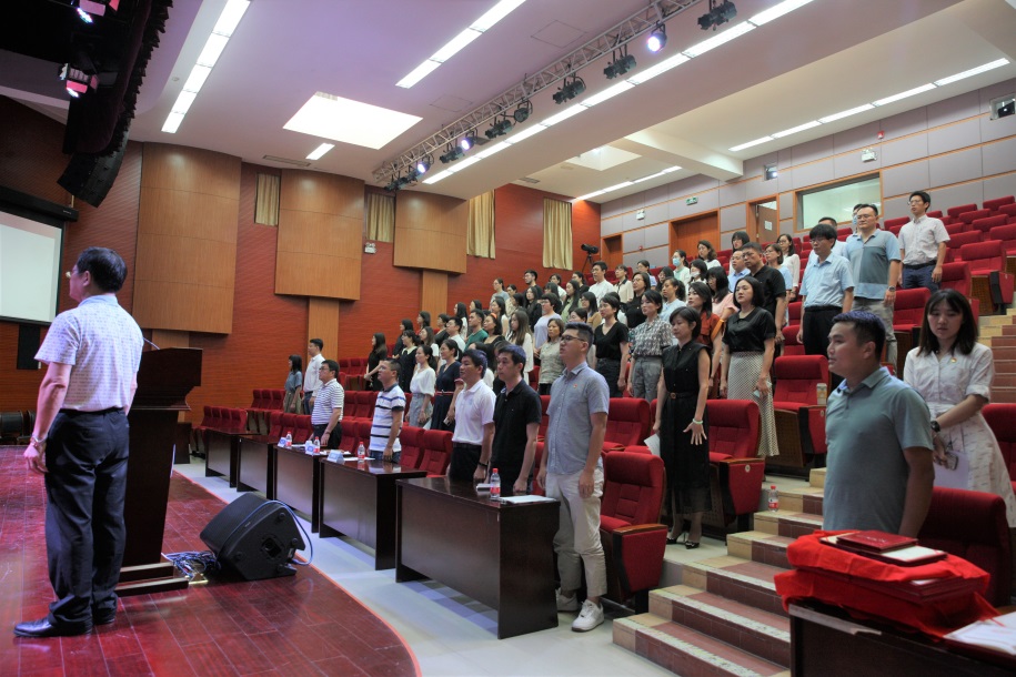 大会在庄严的国歌声中拉开序幕。工会主席戴玉宣读了《关于同意国际学院出席厦门大学第八届教职工代表大会代表候选人预备人选的批复》及国际学院教职工代表候选人名单。