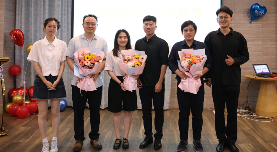 随后,进行感谢师恩的献花仪式,毕业生代表为教师代表洪镔副教授、辅导员邹文菁老师、教学秘书王赵远老师献花,表达对老师们的感谢之情。