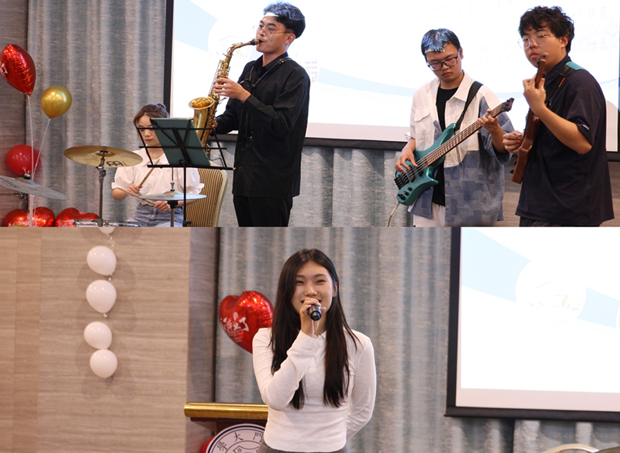 最后,毕业生学子们表演了爵士器乐、弹唱等节目。典礼在欢声笑语中圆满结束。