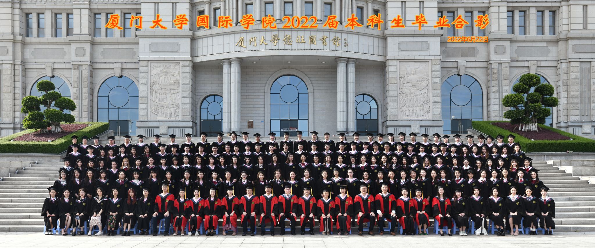 凤凰花繁,骊歌奏响,夏至已至,美好始长,又是一届厦大学子满载硕果向着新的征程出发之时。6月22日下午,厦门大学国际学院2022届本科生毕业合影在翔安校区图书馆南大厅广场顺利完成。
