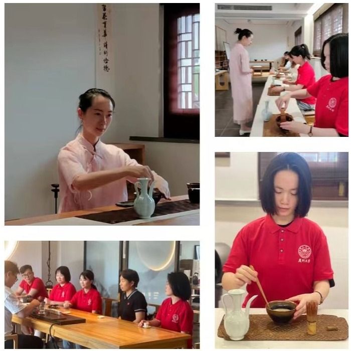 实践队首先走访了武夷山下我院校友所创的茶艺工作室。校友为队员们系统梳理了茶文化的脉络,介绍武夷山茶道的制作工艺和其中融入的传统文化的内涵。队员们通过体验茶活动,对茶艺、艺道有了进一步了解,在醇美的茶香中潜移默化地接受文化熏陶,体会中国文化的博大精深。在这里队员们还观赏到了根植于闽北武夷山的千年文化—茶百戏。以茶为墨,在茶汤上作画,精美的技艺令人惊叹。队员林佳敏感慨颇深,“茶百戏,让我感受到1000年前的中国古人是多么的聪明智慧,感受到我们中华民族是很优秀的民族”。
