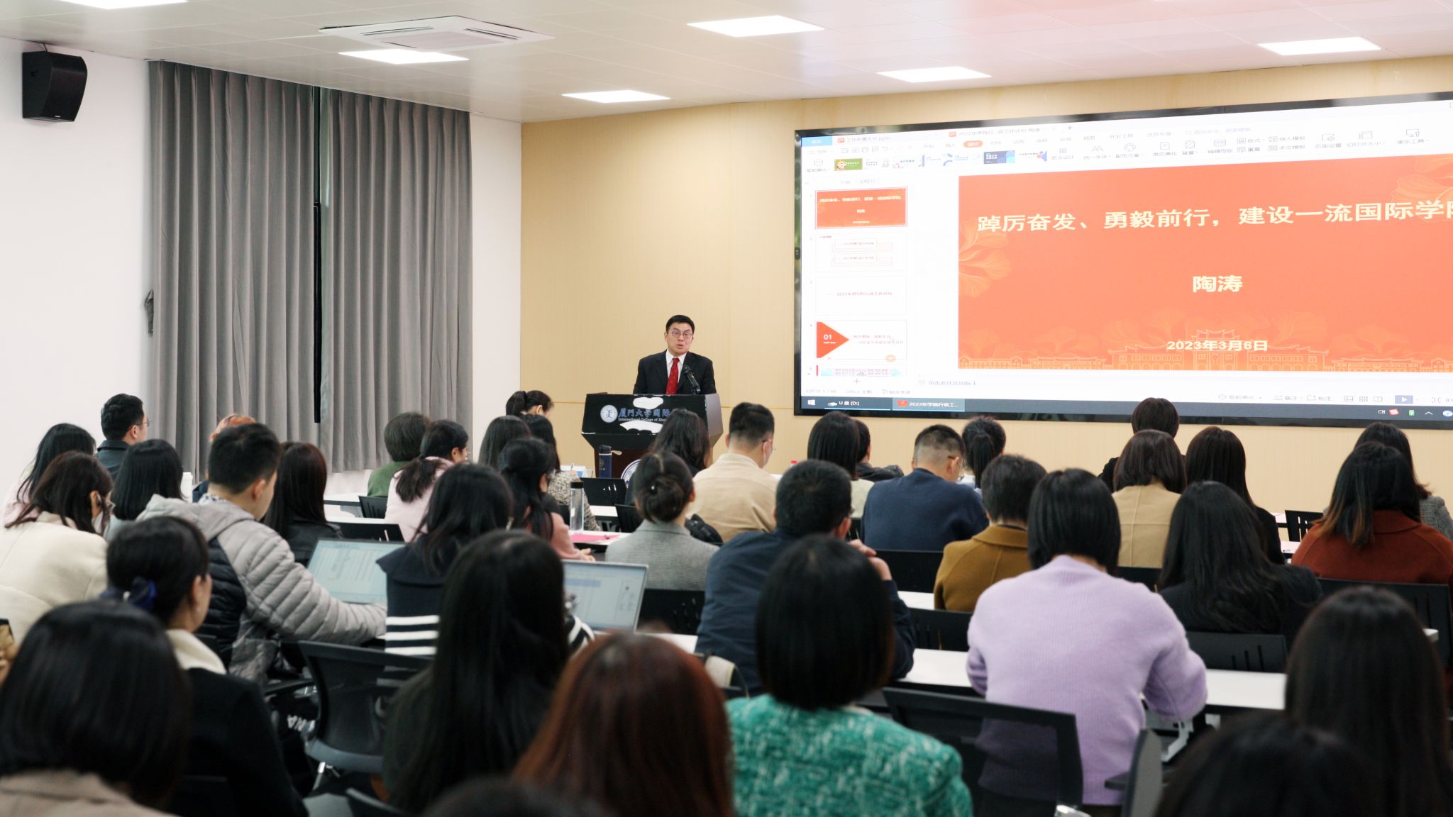 3月6日下午,国际学院2023年工作布置大会在漳州校区四号楼101会议室举行。学院党政领导班子成员及全体教职员工参加会议。会议由张晓云副院长主持。