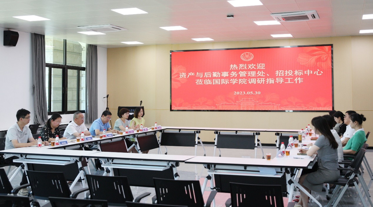 为扎实推动学习贯彻习近平新时代中国特色社会主义思想主题教育走深走实,深入开展调查研究工作,5月30日上午,校资产与后勤事务管理处处长、招投标中心主任王沈扬一行4人来我院调研。漳州校区办公室主任王智兰,国际学院院长陶涛、副院长张晓云、教师代表及学院办公室相关工作人员参加调研座谈。