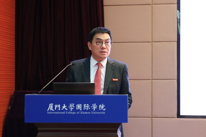 杨晶副教授作为教师代表发言。她对同学们四年来取得的累累硕果表示祝贺,并对同学们提出三点期望:一是牢记厦门大学校训,在新的人生征程勇攀高峰;二是在奋斗中不忘培养兴趣,关注情感的培育及灵感的激发,拥有持久的创造力;三是珍惜同学间深厚情谊,保持联系,发挥同伴作用,共同成长。