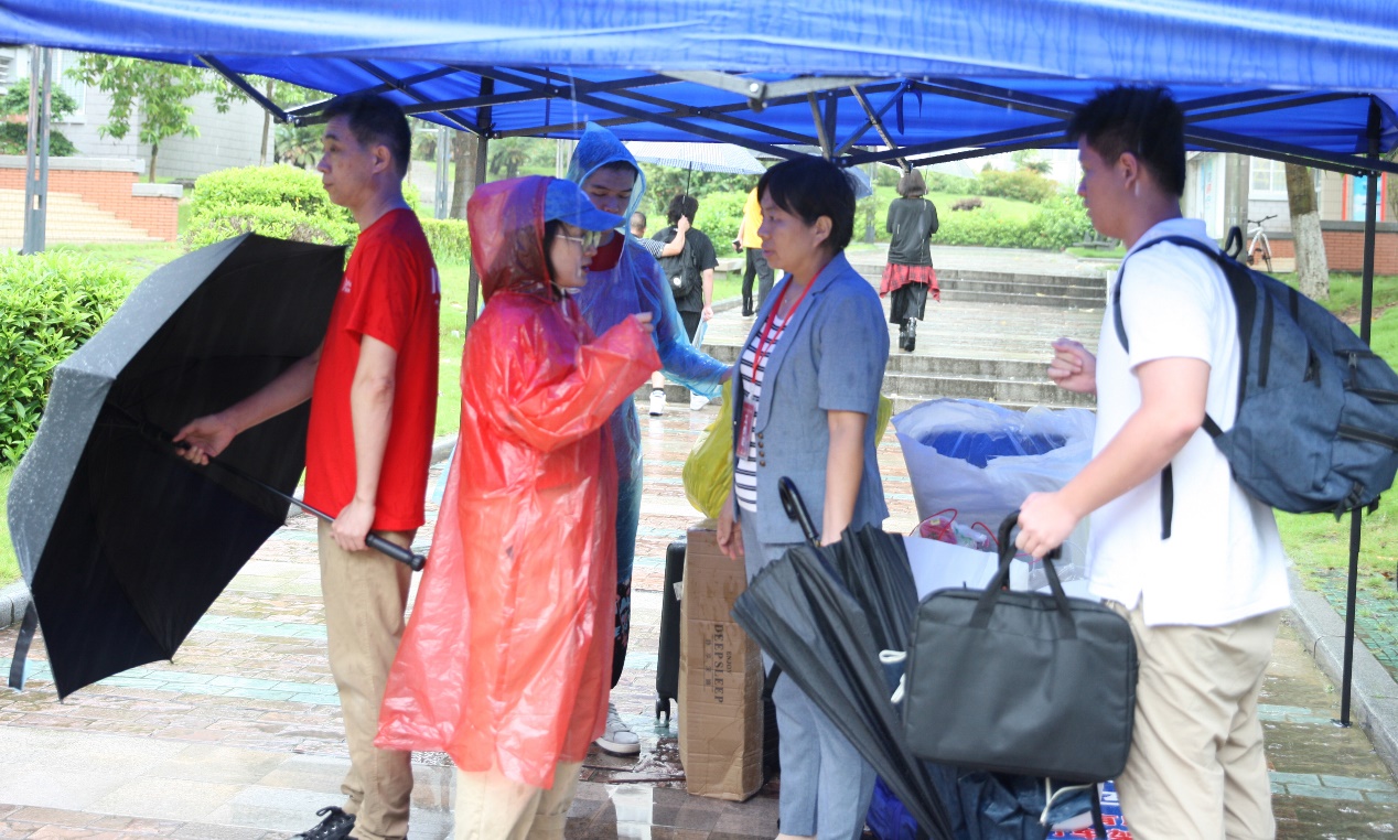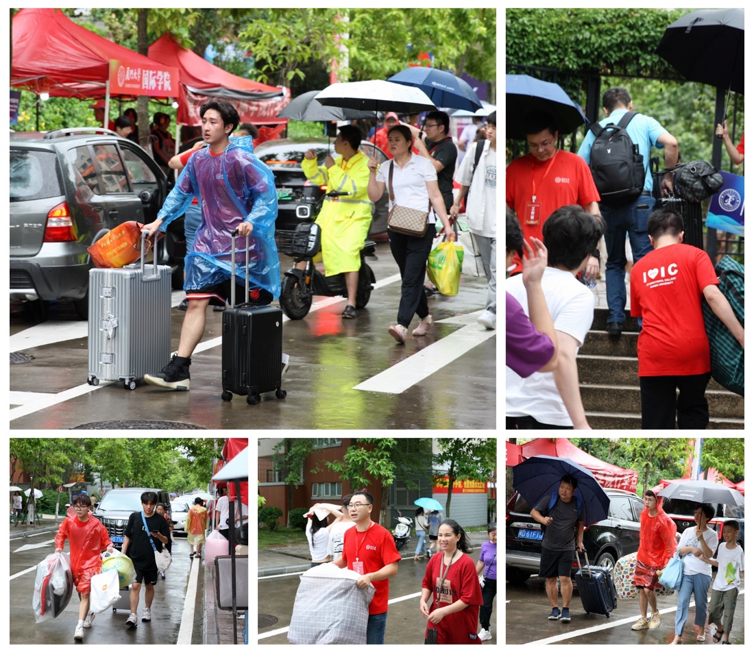 学院积极调动党员、学生干部、老生们的志愿服务力量,提前根据国际本科项目、录取专业等让新老生结成“一对一”志愿服务伙伴。线上,志愿者们耐心地回答新生们的各种问题;线下,志愿者们在雨中积极为有需要的新生及家长提供雨伞、雨衣,冒雨帮助新生搬运行李,引导至宿舍楼下。从校园引导到行李搬运,从信息咨询到入住登记,志愿者们的身影活跃在校园各处,以温暖诚挚的笑容迎接新生入校,以热忱之心削减新同学们的紧张与担忧。