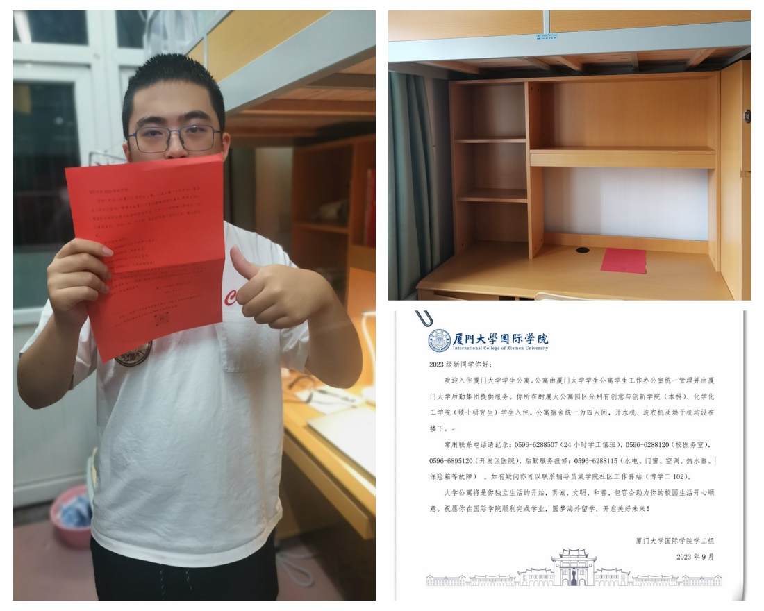 为确保开学顺利有序,学院经过周密部署,做好了各项准备。新生报到前,学工组组织全体辅导员逐间巡查宿舍,贴好床位号,并贴心地为每位新生留下了一份祝福语。来自上海的王同学表示:“看到干净整洁的宿舍,还有学院的祝福语,让我觉得很温馨,有一种家的感觉!”