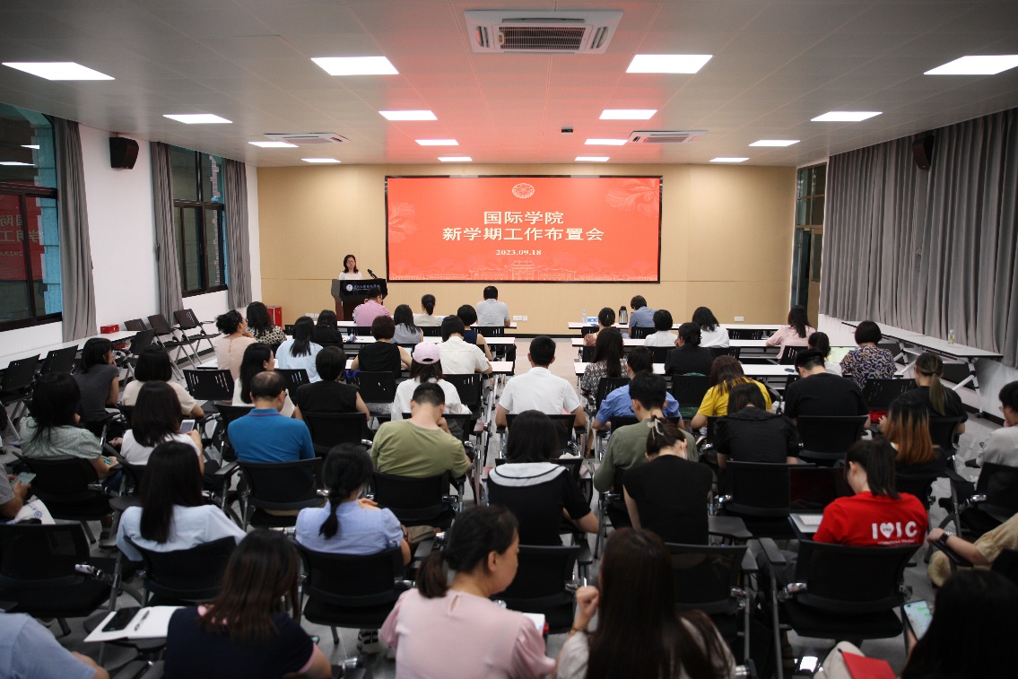 9月18日下午,国际学院2023年秋季学期工作布置会在漳州校区四号楼101会议室举行。学院党政领导班子及全体教职员工参加会议。会议由张晓云副院长主持。