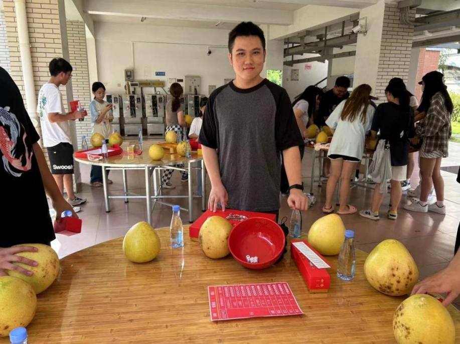 本次博饼活动采用的是传统的博饼方式,桌案正中会放上一块红色大瓷碗。同时备好六颗骰子,外加一盒中秋会饼。通过抛投六颗骰子,组合状元榜眼探花进士举人秀才六式,从而获得相应的奖品,学院还贴心为每个学生准备了一个代表吉祥如意的水果柚子。