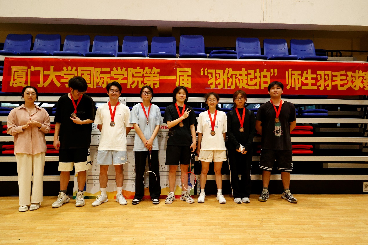10月14日上午九时,国际学院第一届“羽你起拍”师生羽毛球赛在厦门大学漳州校区风雨球馆二楼如期开赛。学院学工组体育部指导老师罗流河组织开展本次比赛,来自学院各年级师生八支队伍,共66人参赛。