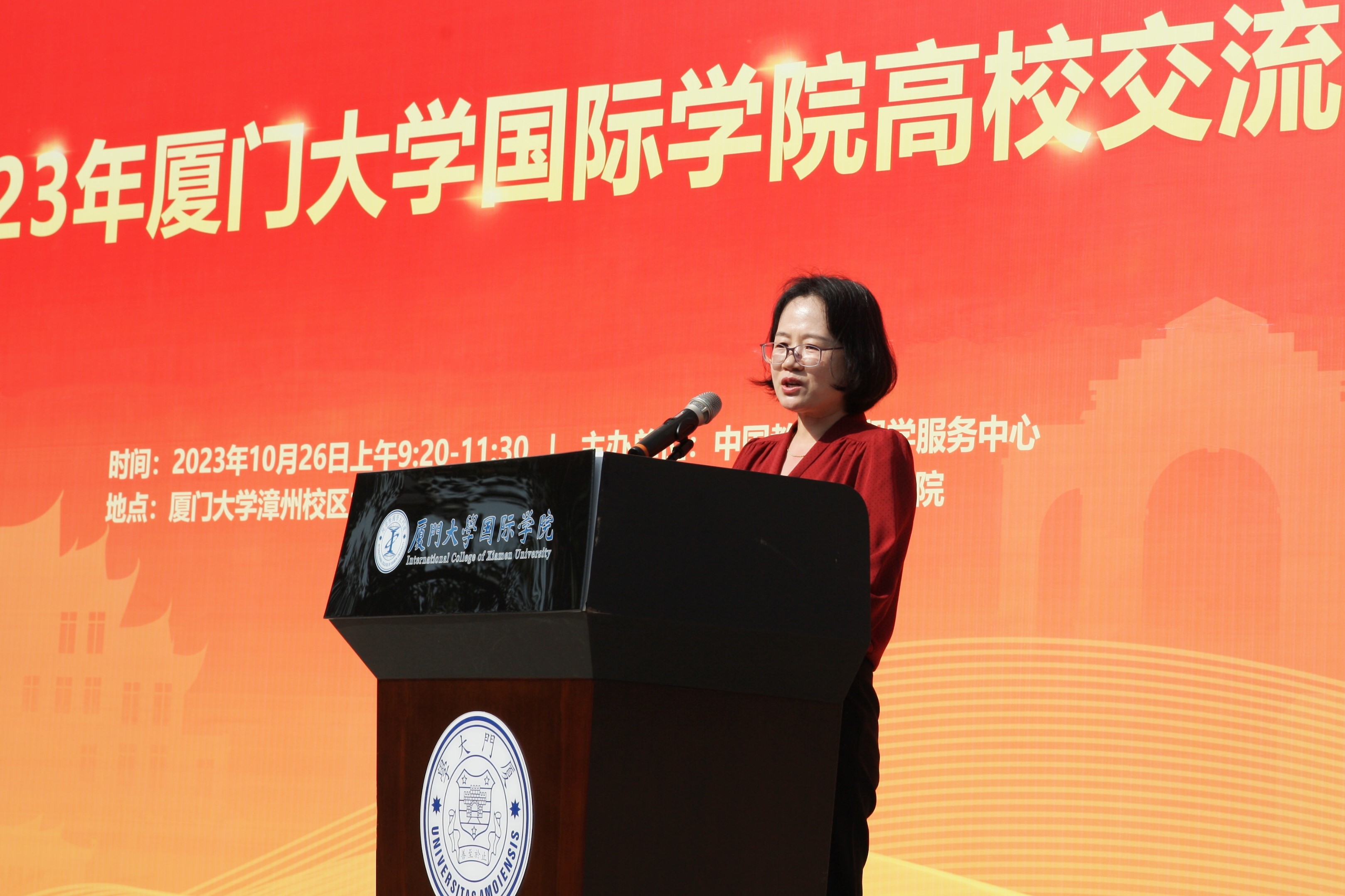 10月26日上午,由中国教育部留学服务中心主办的2023年高校交流会在厦门大学漳州校区主楼群4号楼国际学院前厅成功举办。本次高校交流会共有英国埃塞克斯大学、牛津布鲁克斯大学、赫尔大学、德蒙福特大学以及詹姆斯库克大学新加坡校区等30余所国外合作院校参会。活动开幕式由国际学院副院长陈向柳主持。