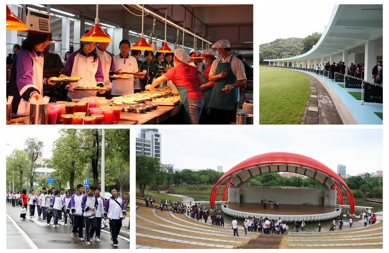 体验课结束后,来访师生抵达校区中区食堂就餐。同学们满怀欣喜地品尝着学校的菜品,不时称赞食堂环境温馨整洁,菜品丰富且味道可口。用餐结束后,在招生工作组老师和志愿者的引领下,来访师生一路参观了高尔夫球场、水上音乐广场、宿舍生活区等场地设施。绿树成荫的美丽校园、融合中西方元素的嘉庚风格建筑以及功能齐全的各类场馆设施给来访师生留下了深刻的印象。