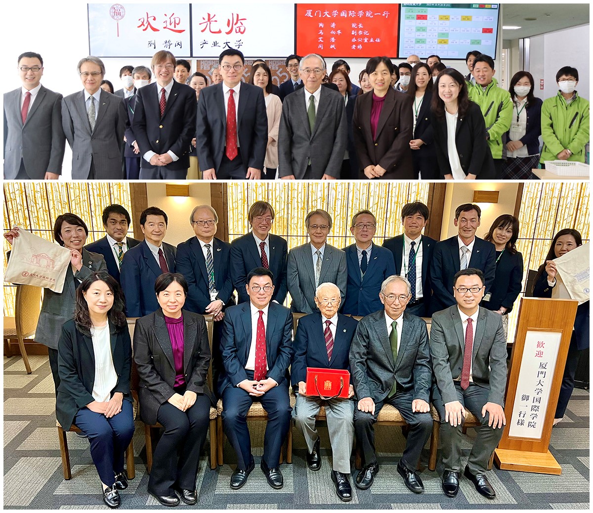 陶涛院长一行首先访问了静冈产业大学,与该校理事长三枝幸夫教授、校长堀川知廣教授、副校长田畑和彦教授和经营学部部长佐野典秀教授等进行座谈交流。理事长三枝幸夫致欢迎辞,对陶院长一行的到来表示热烈欢迎,并介绍了静冈产业大学的历史与发展现状。校长堀川知廣表示,与厦门大学国际学院的友好合作始于2007年,2009年开始接收第一批从厦门大学国际学院通过编入考试的学生,至今已有15届学生。他指出,近几年厦门大学国际学院中日项目学生的培养质量显著提升,通过静冈产业大学编入考试的学生数成倍增加,目前来自厦门大学国际学院的在校学生有110多名,占该校外国留学生的50%以上。