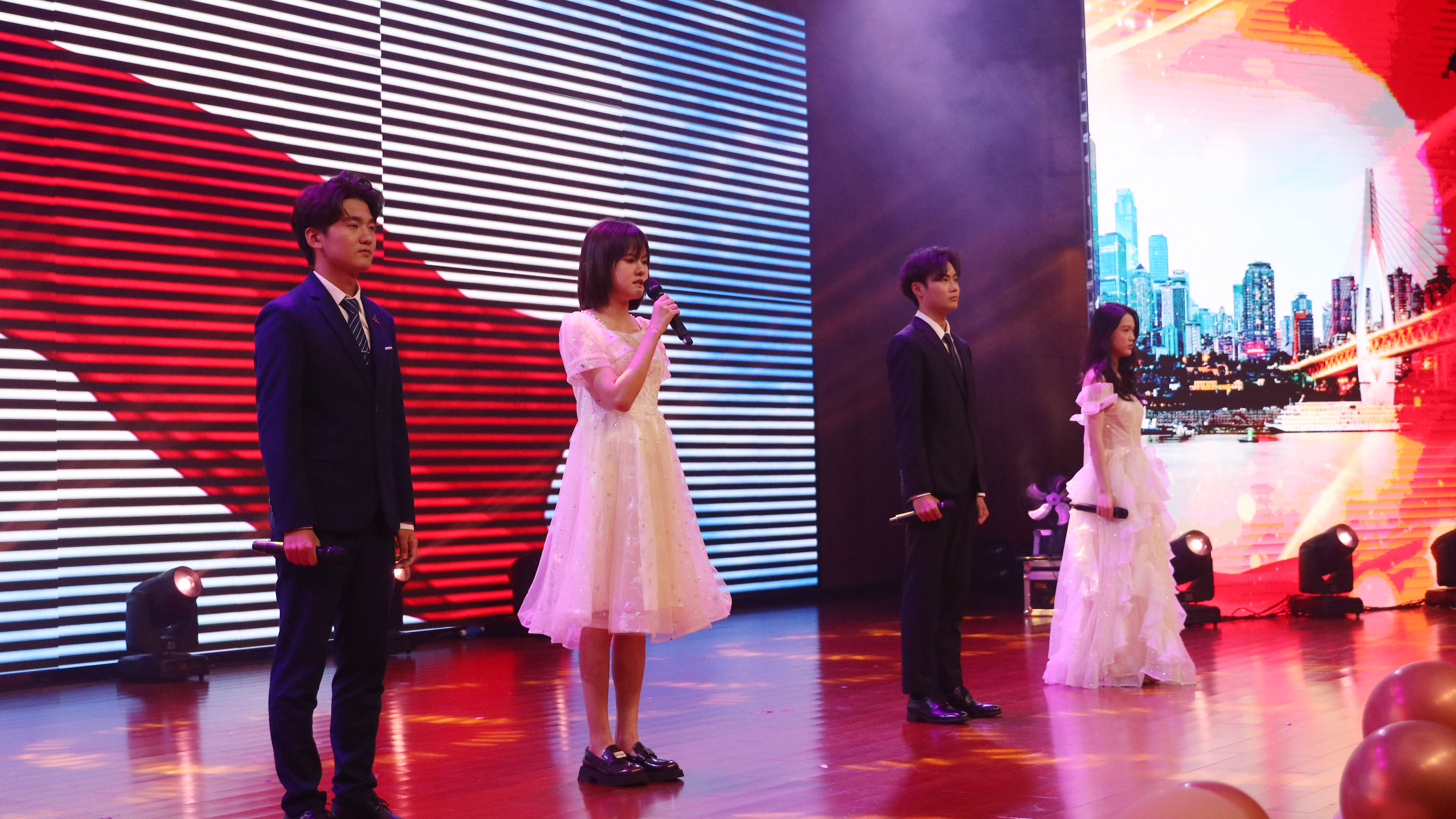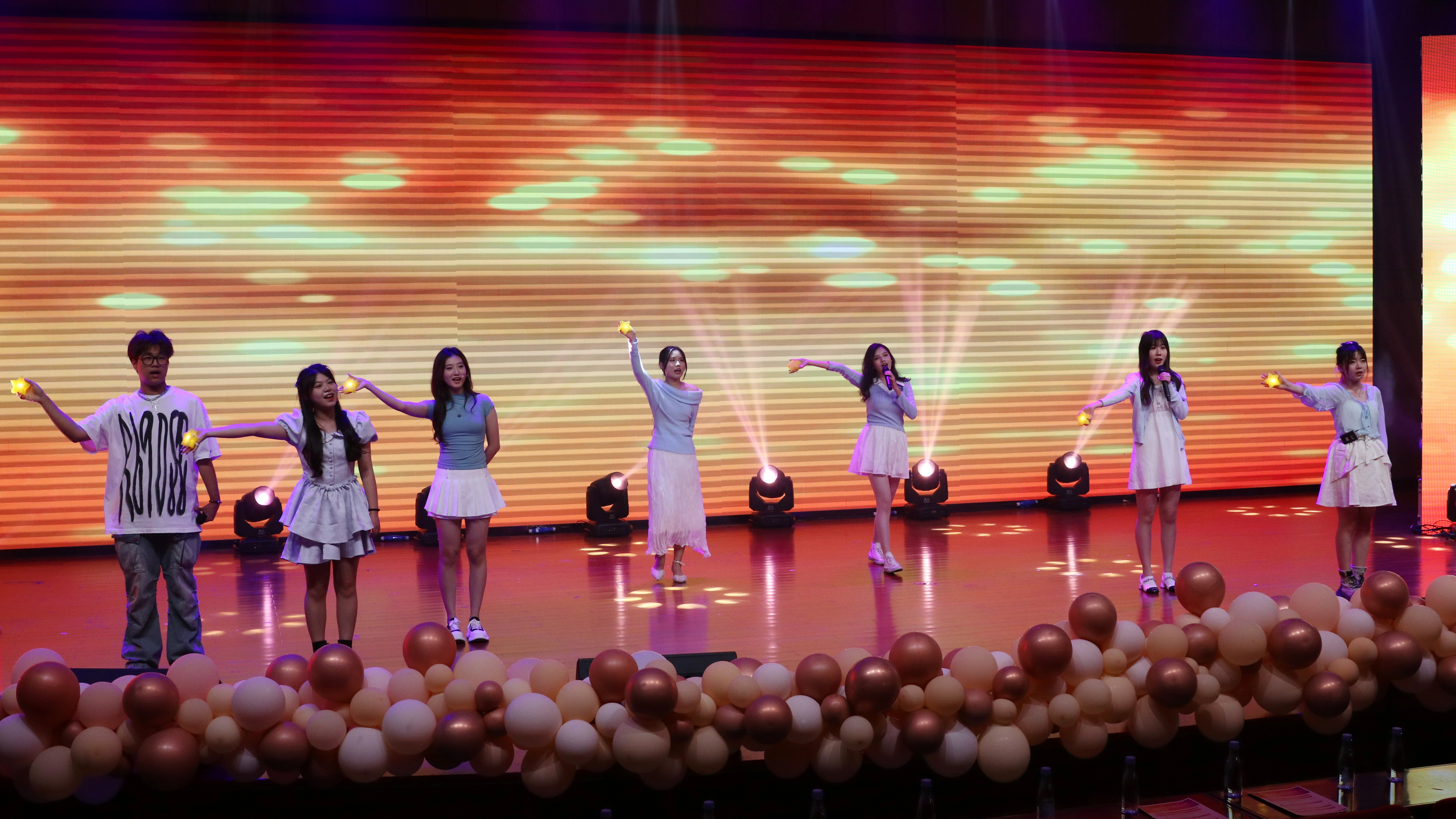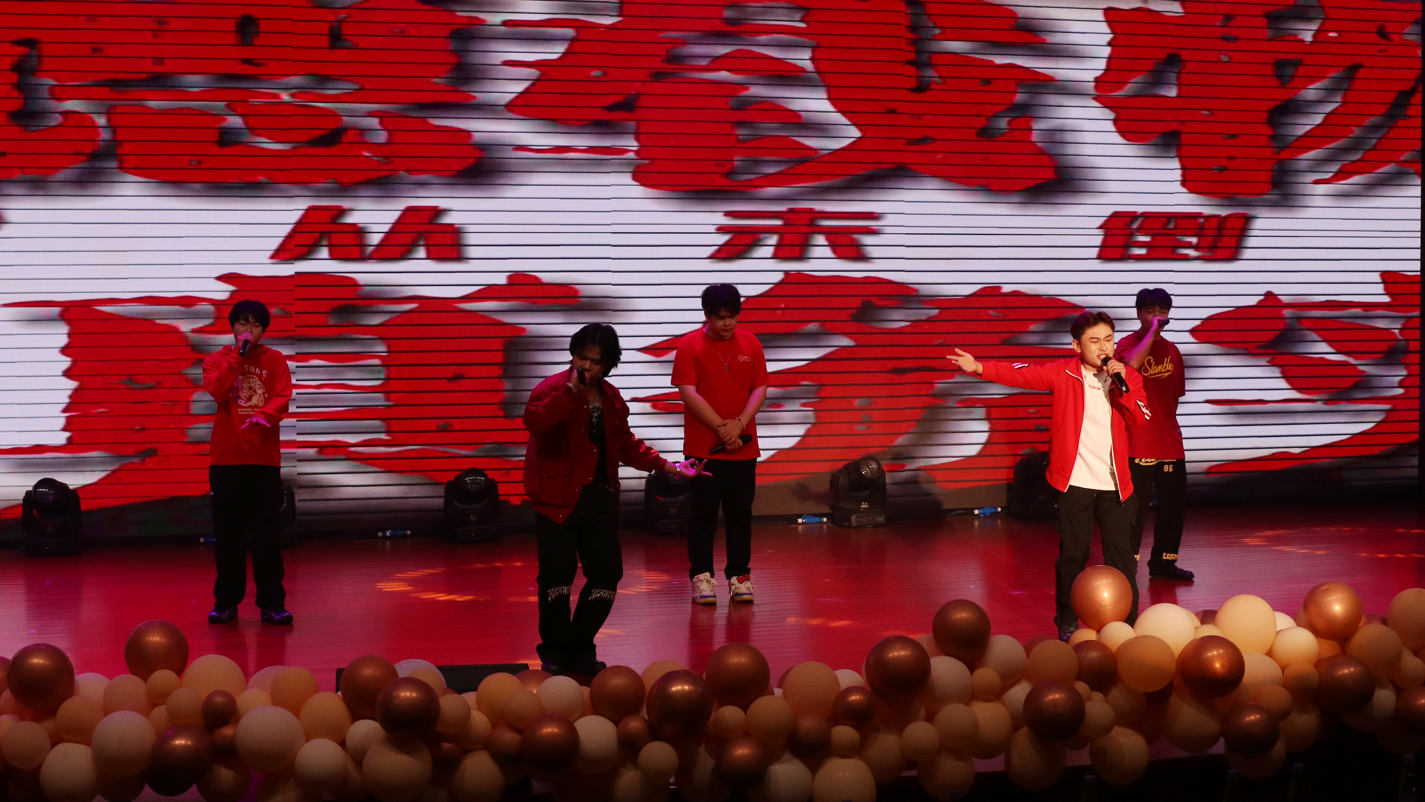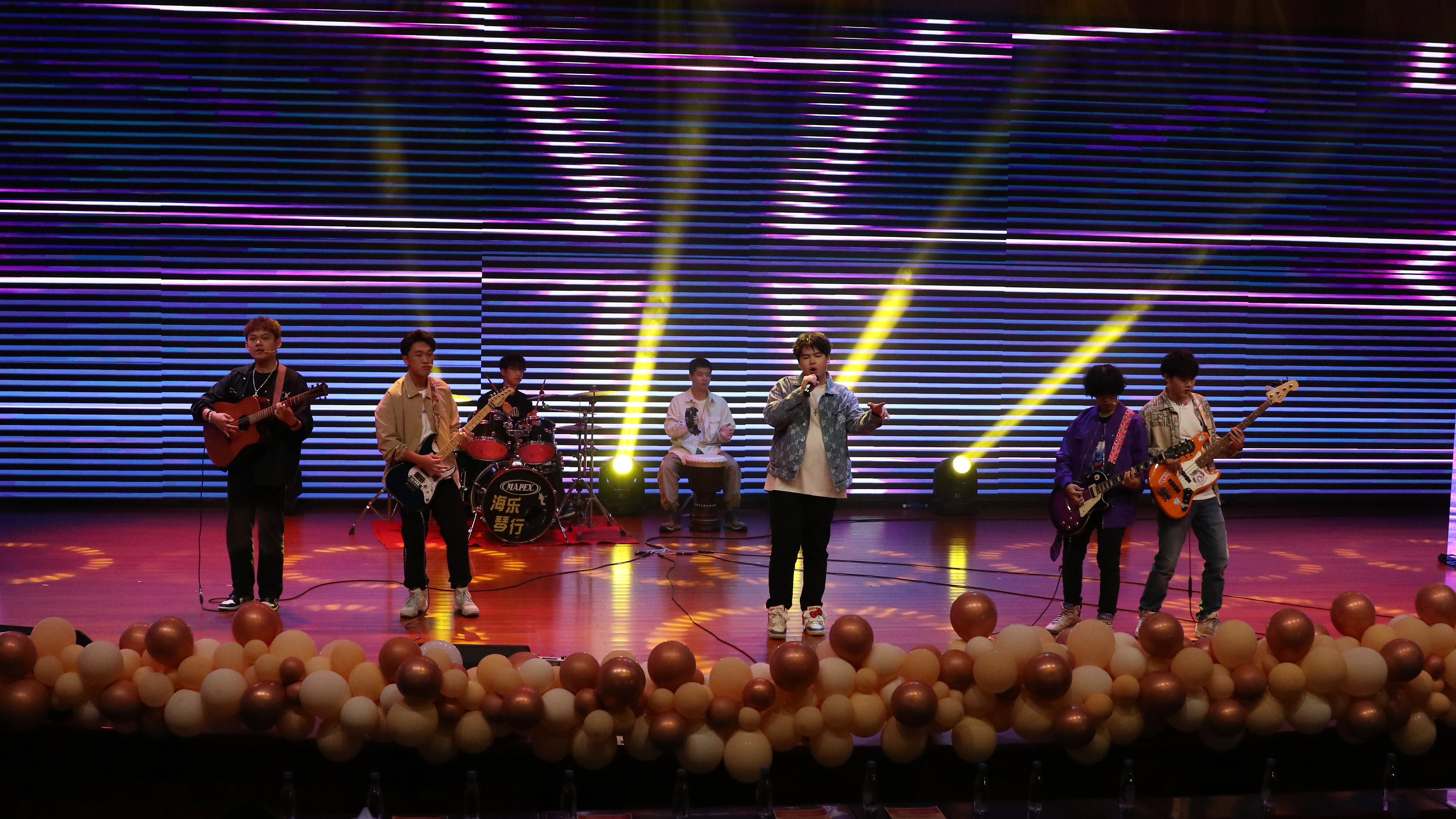 晚会开始前,伴着温馨的音乐,大屏幕上播放了来自学院教师、学生家长代表、校友、学长学姐们为同学们送来的美好祝愿,祝福同学们学业有成,前程似锦,未来可期。紧接着,在同学们的欢呼声中,乐队组合表演拉开了晚会的序幕。节奏感强的乐手,激情欢乐的演唱,瞬间点燃全场。