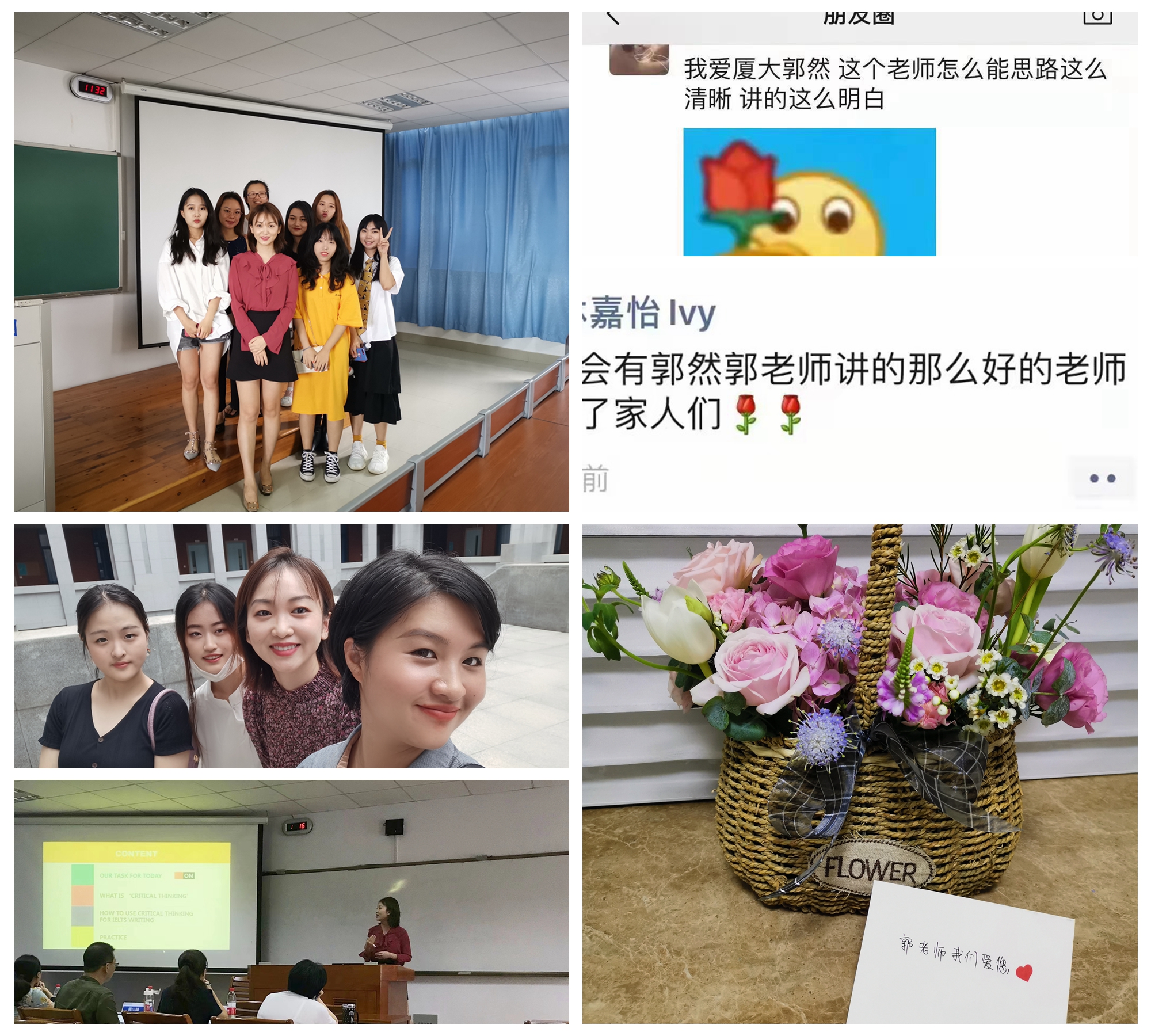 【教师简介】郭然,厦门大学国际学院专业教研组专任教师,毕业于澳大利亚昆士兰大学,取得国际商务和市场营销双专业硕士学位。2017年郭老师回国任教,主要教授商务管理专业相关课程。她曾获得国际学院教学技能比赛一等奖,参加厦门大学骨干教师培训夏令营获得“名师的诞生”擂台赛第三名及优胜奖。