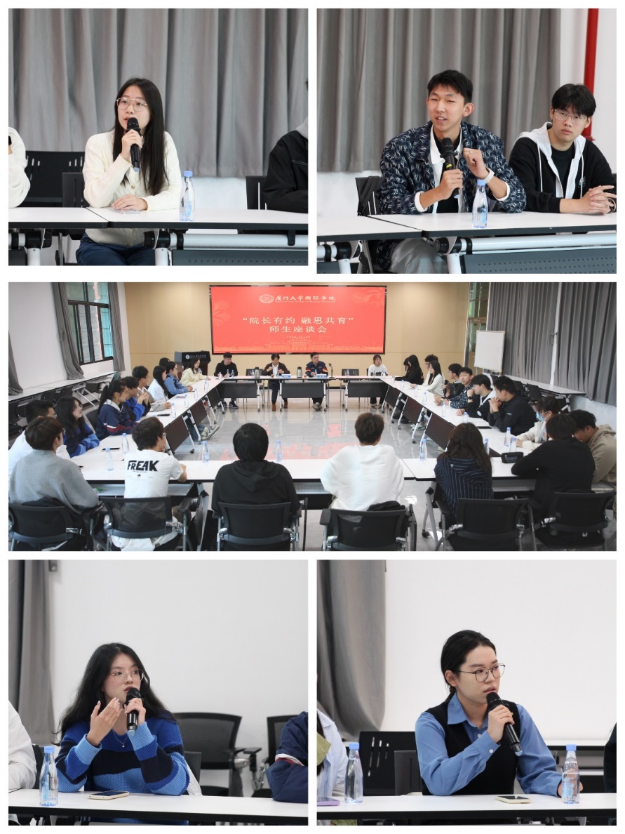 座谈交流中,同学们结合个人及身边同学的在校学习生活积极发言,并从课程教学、文体活动、日常管理、社区生活等方面提出思考和建议。针对同学们提出的问题与建议,陶院长用心倾听,逐一回复,鼓励同学们珍惜时间,做好各项学业规划,朝着既定目标努力进取,充分发挥个人潜力与才华,实现出国留学梦想。