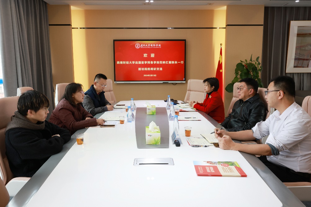 3月13日下午,西南财经大学出国留学预备学院副院长范映红一行3人来访我院。国际学院院长陶涛及学院办公室相关工作人员参加座谈交流。