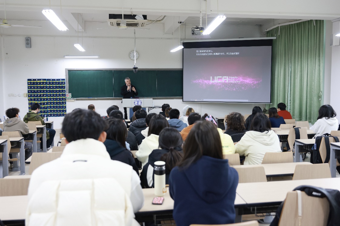 讲座中,Hedley Roberts教授结合自身在中央圣马丁学院和皇家艺术学院的求学经历、教育与艺术两方面的工作经历及多年教育国际化方面的研究经验,详细梳理了人工智能的发展过程、表现形式及与艺术、学术、经济等领域的关系。通过深入分析多个有趣的真实商业案例及分享ChatGPT在学习中的应用,他与同学们着重探讨了人工智能时代我们应如何以创造力和真诚的方式去应对新兴的人工智能技术。他进一步指出,人工智能时代已经来临,AI会越来越成熟,也会越来越复杂,我们应积极应对它带来的各种机遇与挑战。