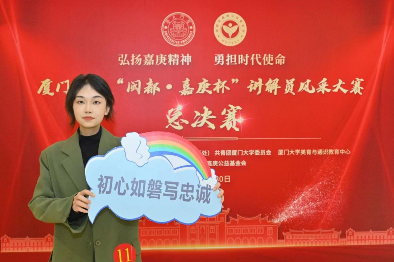 杨珂语,厦门大学国际学院2023级预本硕连读项目学生。喜欢音乐、诗歌,喜欢用文字记录生活。代表学院参加2024年厦门大学“闽南·嘉庚杯”讲解员风采大赛,经报名选拔、初赛角逐、决赛展示,最终脱颖而出,获得三等奖的优秀成绩。