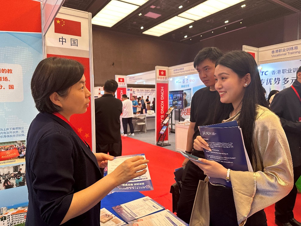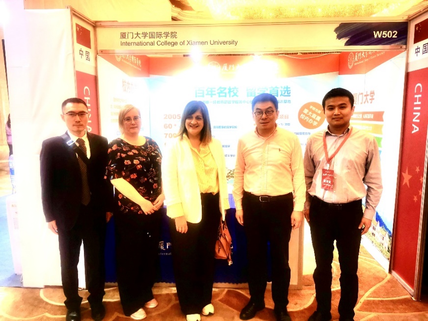 参展期间,苏格兰学历管理委员会(SQA)国际部主任Gillian Hepburn、国际区域经理Aisling Kelly、中国区经理张进敏也来到我院展位,Gillian Hepburn女士对陶院长牵头完成的英国高等教育文凭项目(SQA AD项目)20年成果总结高度赞赏,对厦门大学国际学院长期以来的高质量办学表示充分肯定。