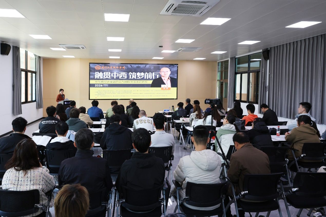 3月9日下午,国际学院“融贯中西,筑梦前行”系列讲座第一讲在漳州校区主4号楼101多功能会议室举行。伦敦大学学院(UCL)知名学者、厦门大学校友叶臻(PETER)教授应邀主讲,围绕金融前沿动态与国际高等教育体验,与我院师生展开深度对话。讲座由国际学院院长余宏波主持,全院部分师生代表参会聆听。