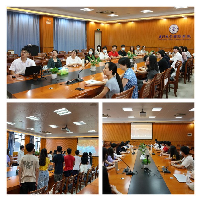 2021年7月1日,庆祝中国共产党成立100周年大会在天安门广场隆重举行。中共中央总书记、国家主席、中央军委主席习近平发表重要讲话。国际学院组织师生党员、教职工代表在翔安校区坤銮楼A104会议室、漳州校区514会议室集体收看庆祝大会。各师生党支部亦通过电视、网络、广播等方式组织收看大会。