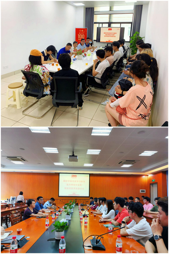 国际学院党委一贯重视与师生的沟通交流,定期开展“院长有约”、师生座谈会等系列活动,充分倾听师生的意见建议,解决师生提出的困难和问题。党史学习教育开展以来,我院紧紧围绕立德树人根本任务,大力弘扬干实事、求实效、创实绩的好作风,召开座谈会、调研会,解决师生群众关切的问题,凝聚学院广大师生,保障学院教学秩序的稳步开展,通过一系列暖心、关爱的举措,尽心尽力解决师生心中的困难事、难办事,进一步提高人才培养质量。