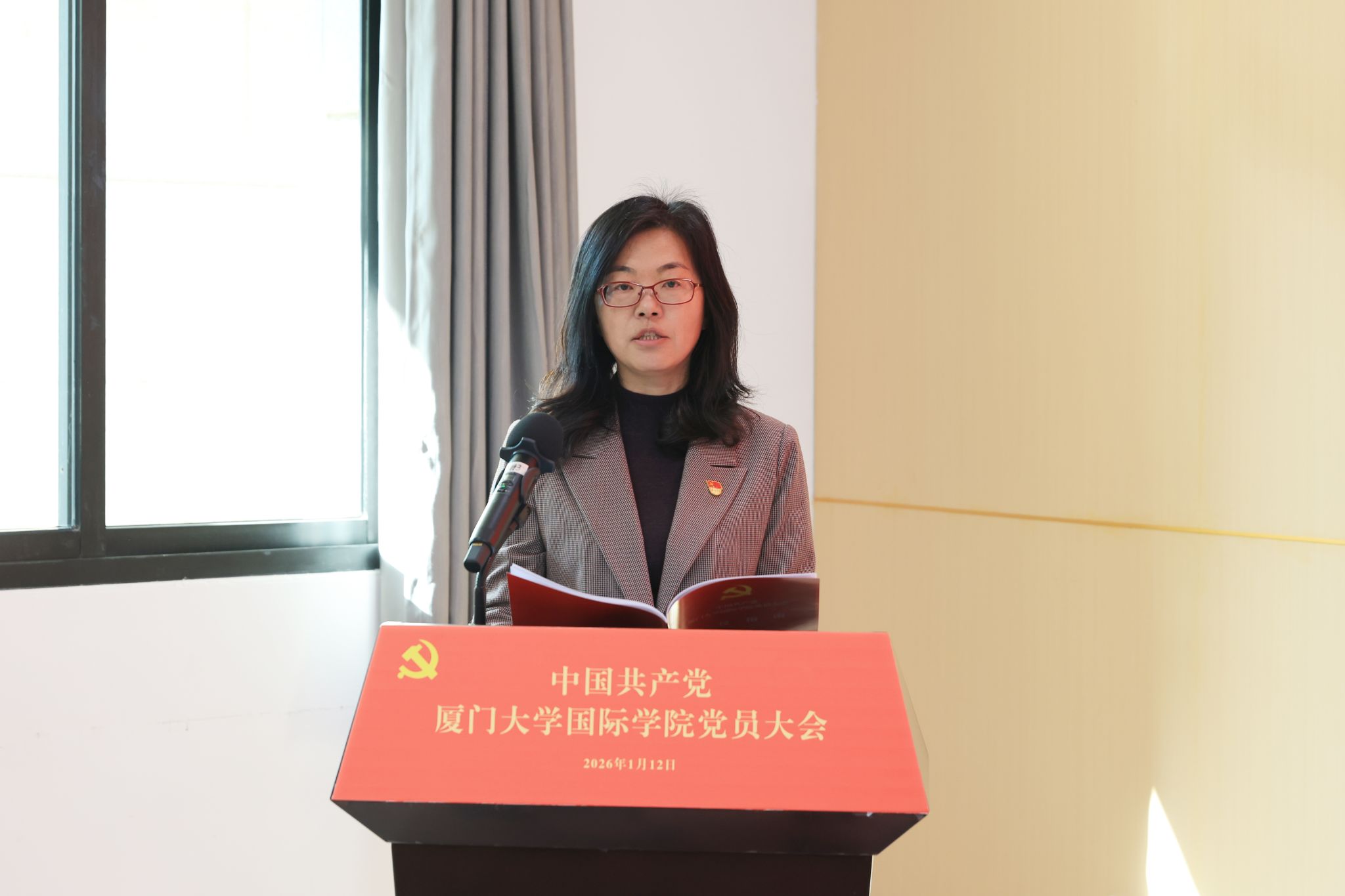 大会号召学院全体党员要更加紧密地团结在以习近平同志为核心的党中央周围,高举中国特色社会主义伟大旗帜,坚定不移以党的二十大和二十届历次全会精神为指引,贯彻落实学校第十二次党代会的各项部署,踔厉奋发、勇毅前行,奋力谱写国际化办学新篇章,为厦门大学建成中国高等教育东南中心、与时俱进建设世界一流大学贡献智慧与力量。