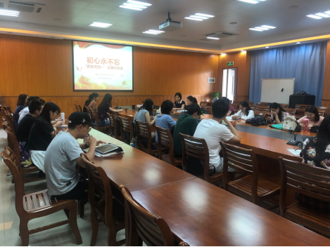 9月26日下午,国际学院本科生党支部召开以“当初入党为什么”为主题的固定党日+活动。张飞霞老师、党支部书记刘佳慧等27位本科生党支部党员参与了本次会议。会议围绕《唯有初心不忘》和《初心如炬》两篇文章所讲述的廖俊波县委书记和老英雄张福清的故事,党员们通过结合自身的入党动机,分享对于入党初心永不忘的理解和感想。