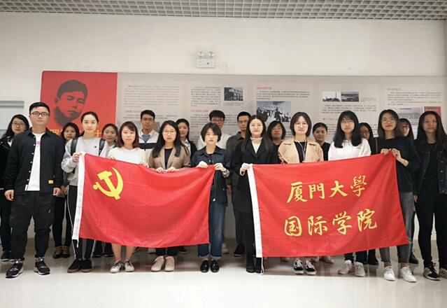 4月5日清明节,国际学院本科生党支部在厦门大学翔安校区图书馆前祭扫校主陈嘉庚先生铜像,并参观了罗扬才烈士事迹展。