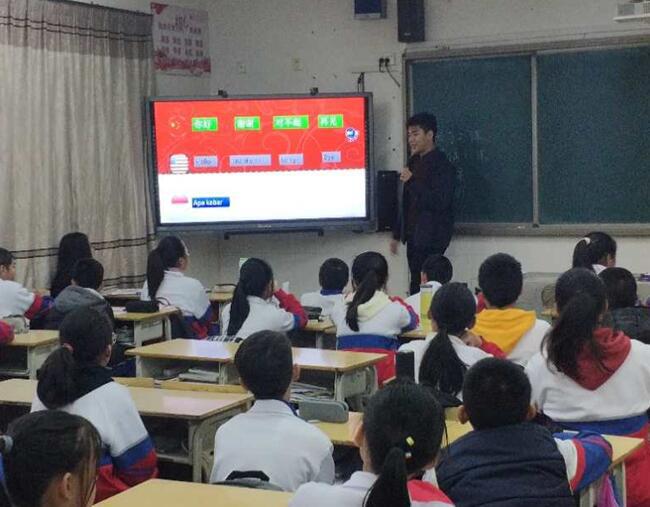 负责初一(1)班的志愿者介绍的是壮族的风土人情,教学互动热烈,与学生建立了良好的友谊。负责初一(2)班的丁诗扬主要分为三个部分讲述了泰国的风土人情:1、泰国的人种2、泰国的建筑3、泰国的美味和动物。丁诗扬带领同学们深入感受了异国文化。负责初一3班的李炜汉介绍了印度尼西亚的地理位置、景点以及美食,引来同学们连连惊叹声。为了让同学们更深切体验印度尼西亚文化,李老师教授了四句印尼语:你好、谢谢、对不起、再见。全班集中学习后,鼓励个别同学依次上台展示并赠送小礼品。负责初一(4)班的志愿者向同学们介绍了意大利的国家概况。首先从意大利的“靴子”外形来引起学生的兴趣,分别从意大利地理位置、人口、特色景点来介绍,寓教于乐,在游戏中注入知识。