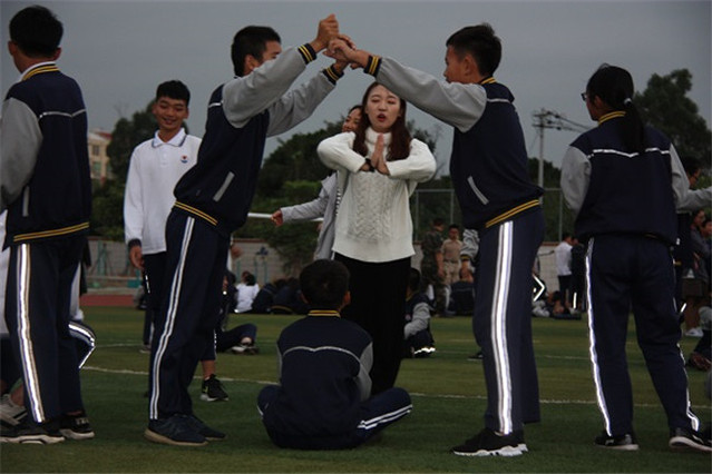 当天下午,学生党员志愿者们来到大嶝中学运动场,分组到初一至初三各年段共12个班级,与中学生们通过互动游戏的形式开始了“破冰”之旅。