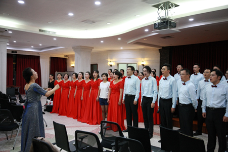 为了展现我院教师风采,提高教职工的凝聚力、向心力,丰富职工业余文化生活,早在几个月前接到合唱比赛通知开始,学院党政领导便高度重视,亲自报名并积极参加排练;学院工会认真组织、精心安排每次排练;参加合唱的近60名老师,虽然日常工作繁忙,但是每到联排日,都能积极放下手中各种事,全身心投入排练中。在专业老师的精心指导和排练下,经过大家无数次的沟通交流、练习配合,比赛当天,在学院办公室、工会精心组织和后勤保障下,合唱团在赛场舞台上大放异彩,以悠扬的歌声、磅礴的气势展现了我院热爱祖国、团结奋进、朝气蓬勃、砥砺前行的精神风貌,体现了我院教职工齐心协力、甘于奉献、勇于担当的精神。