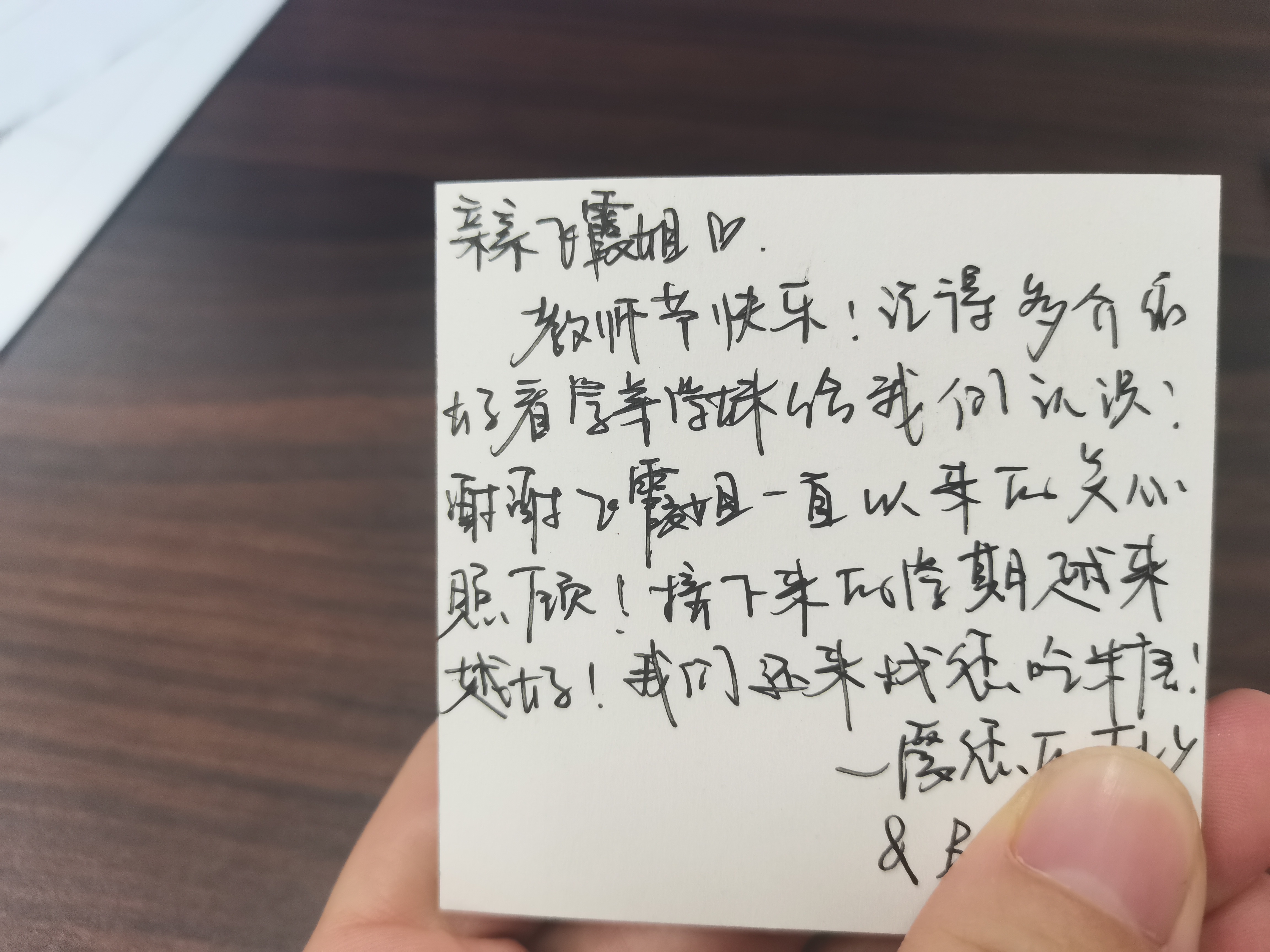 大学期间,时不时会收到霞姐的短信,任何好消息,总是能第一时间收到。无论遇到了什么困难,心里都不虚,毕竟有这么靠谱的辅导员在呢。回想起这一幕幕,心里总是暖暖的。大学是丰富知识的地方,但是更是学习为人处事,树立三观的地方。很庆幸在这个重要的阶段有霞姐的陪伴。
