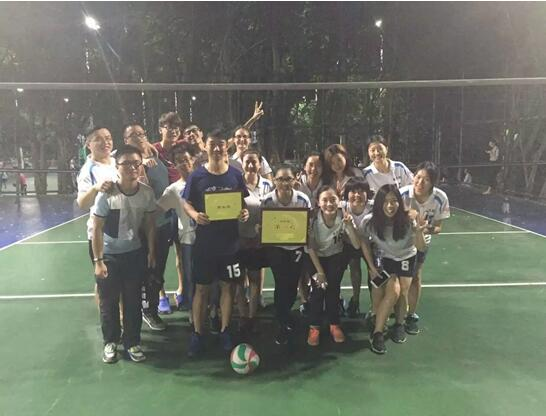 在大一的时候,我还和霍光耀同学创建了厦门大学国际学院排球队。我的大学三年的课余时间基本都给了她们。那个时候真的很艰难,一开始大家都不怎么会打排球,后面我们自己练习,慢慢又吸引了一些同学参与到排球队的活动来。到了大一下学期的时候,就有外国留学生参加排球队。排球队是2016年获得了女队全校冠军,男队全校第五。