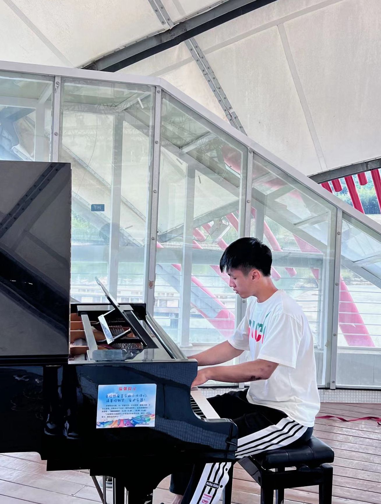 周末我会和同学一起打篮球,参加一些比赛。学校的体育设施齐全,室内体育馆、室外足球场都可以很好的满足同学们的需求。除此以外,我会借着晚课前的时间去学生活动中心练琴,弹奏自己喜欢的古典和流行钢琴曲。