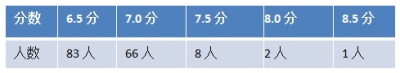 近年来,国际学院还创造了数个厦门大学之最:最高的世界前100名大学研究生录取比率(2016年已达90.7%)、最高的外方合作大学教授授课比例(每专业50%以上)、拥有最多的国外合作大学伙伴(65所),并以厦门大学最低的入学分数考出了多个雅思高分,不乏雅思8.5分及8分、7.5分的同学(6.5分以上人数达160人),具体数据可见下表。
