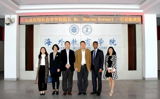 2016年11月29日上午,英国中央兰开夏大学(University of Central Lancashire)商学院院长Dharma Kovvuri先生、中国区经理葛继飞先生一行访问了国际学院。Dharma院长此行的主要目的是想了解与国际学院合作的酒店与会展管理(1+2)项目的运行情况及最新需求,提供支持并进一步密切双方合作。