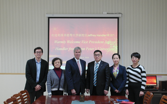 3月6日,美国圣彼得大学(Saint Peter’s University)副校长Jeffrey Handler先生一行来访国际学院,与我院深入洽谈国际项目合作事宜。
