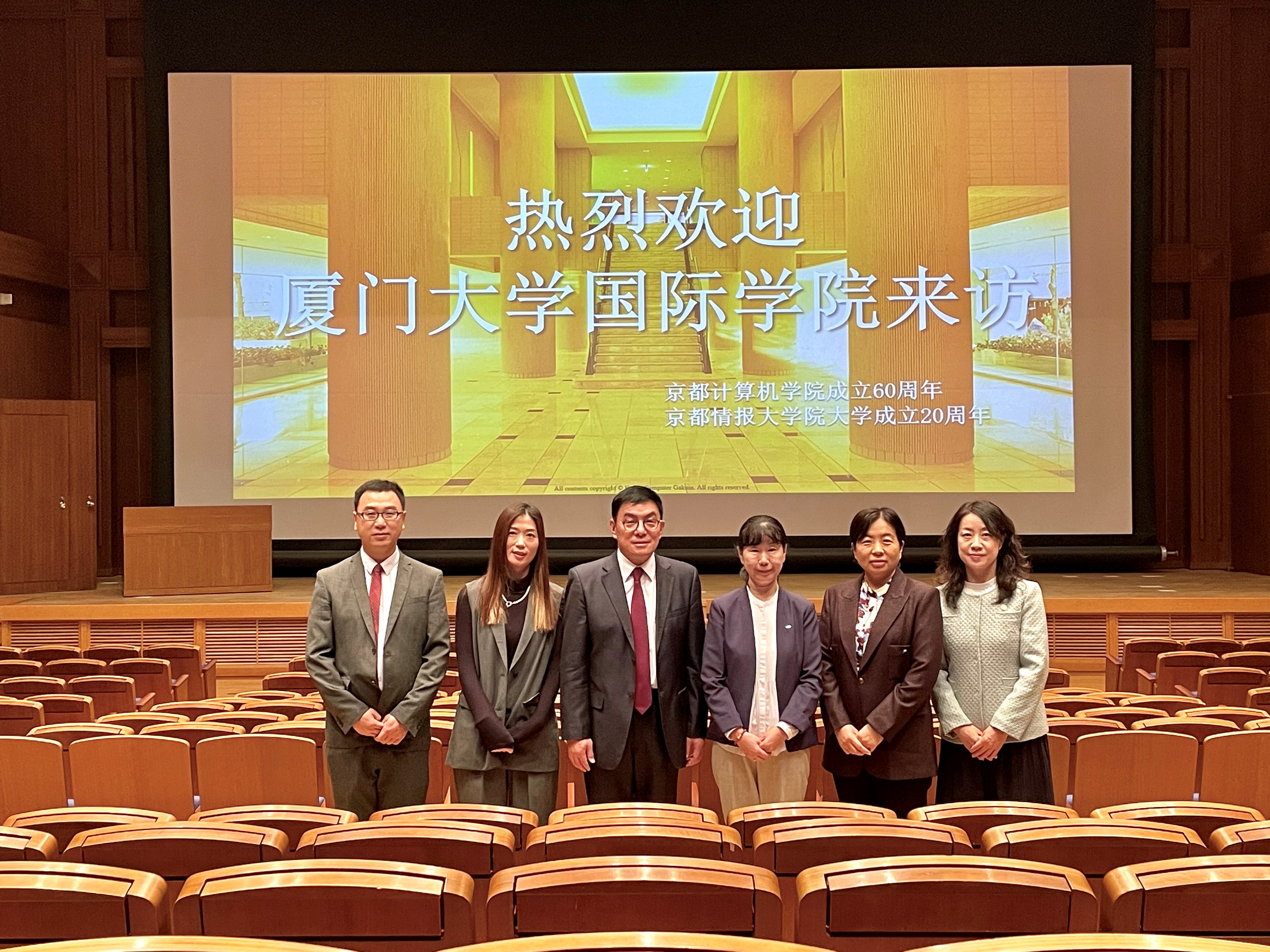 在访问京都信息大学院大学期间,陶院长一行受到该校副校长寺下阳一教授、留学生业务部部长李美慧教授和留学生业务部副部长陈思娜的热情接待,双方就今后合作的可能性进行深入交谈。寺下阳一副校长详细介绍了京都信息大学院大学的发展现状与历史沿革,希望能与厦门大学国际学院开展合作,共同培养具有综合竞争力的国际化IT人才。