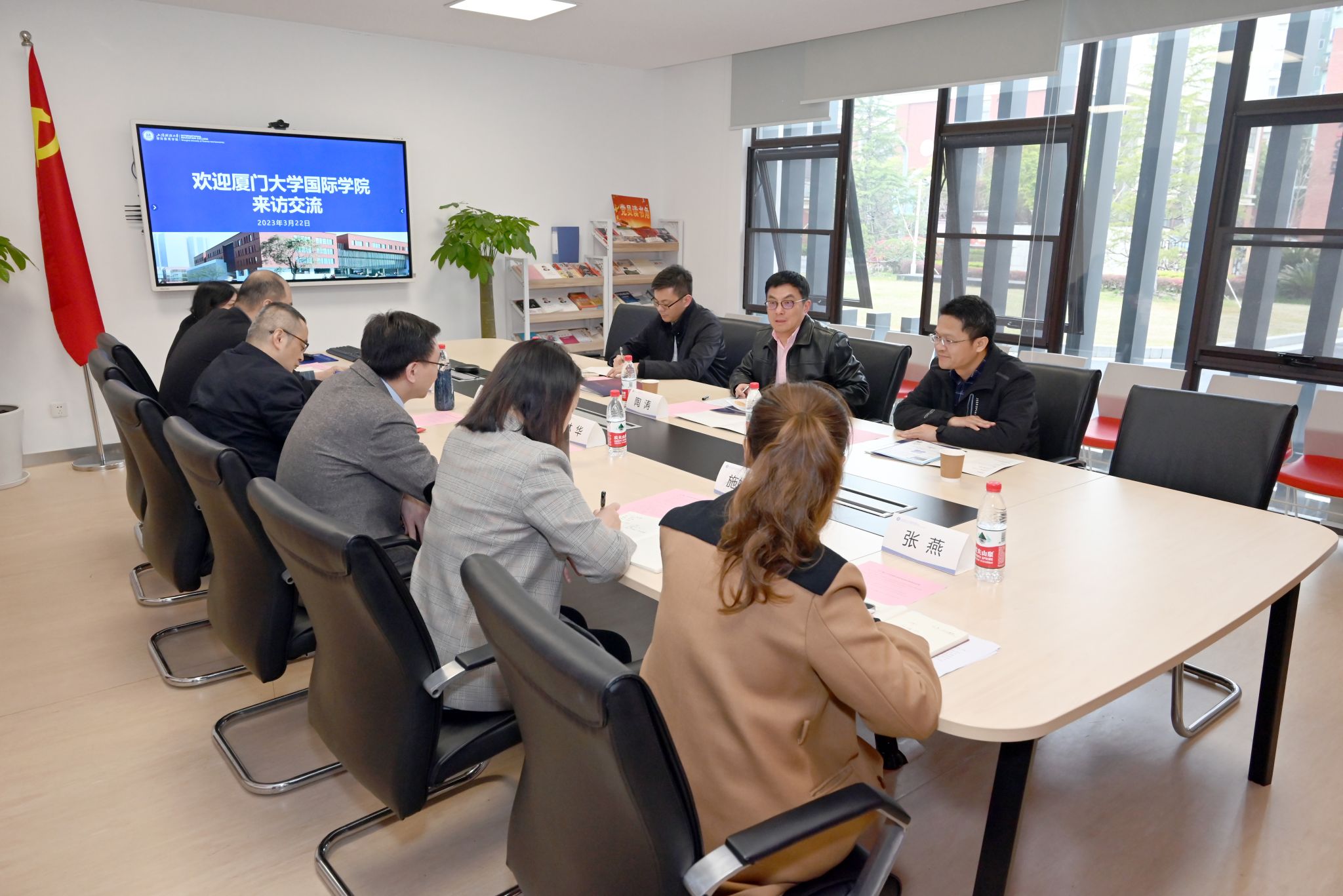 3月22日下午,陶院长一行赴上海财经大学国际教育学院,与院长沈晖、院党委书记林华,综合教研室、教学管理与课程建设办公室、招生办公室、学生服务中心等负责人交流座谈。双方就两院的办学定位、英国高等教育文凭项目的运行情况、人才培养、队伍建设、招生情况、项目教学等方面进行深入交流。