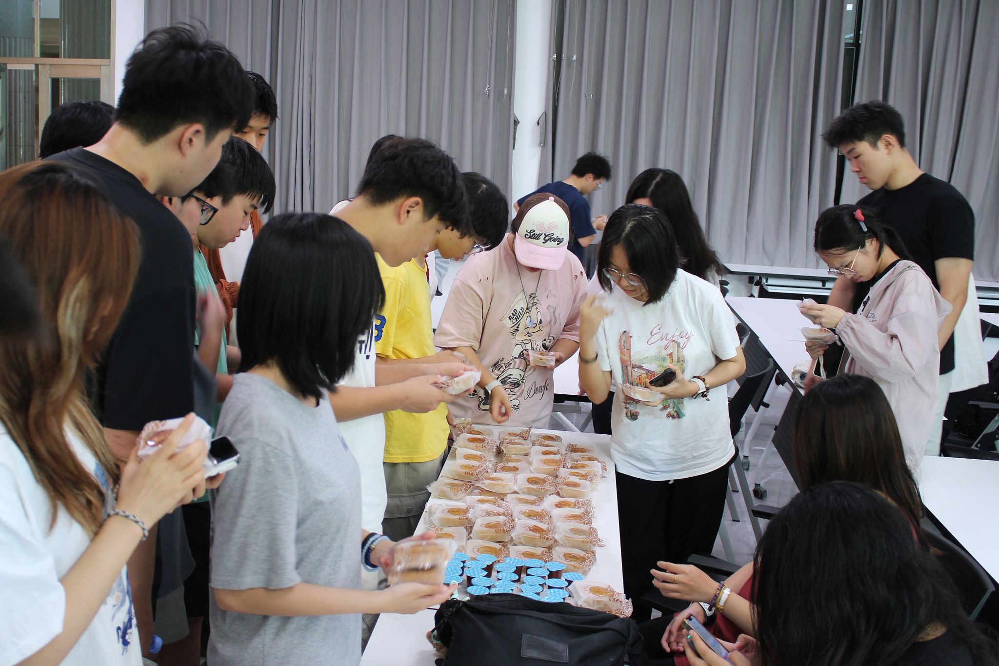 活动伊始,苏德老师与黄宇菲老师为在场的同学们准备了精致的月饼和小零食。这些小小的礼物承载着中秋节日的祝福,也传递着学院对同学们的关怀与温暖。