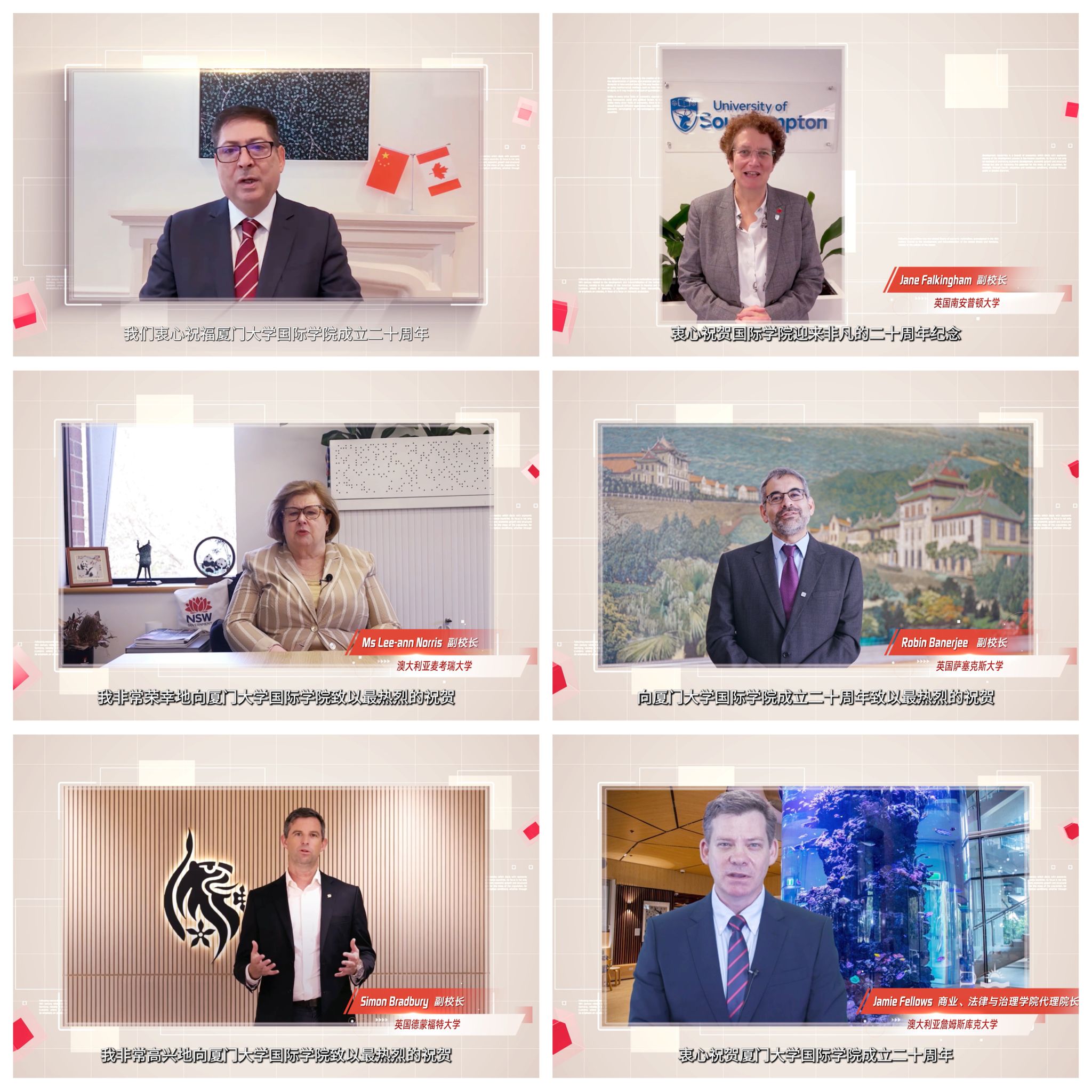 在特别环节《外方院校祝福》中,加拿大加西大学校长兼总裁Bashir Makhoul、英国南安普顿大学副校长Jane Falkingham、澳大利亚麦考瑞大学副校长Ms Lee-ann Norris、英国萨塞克斯大学副校长Robin Banerjee、英国德蒙福特大学副校长Simon Bradbury等国外合作院校为国际学院建院20周年致以热烈祝贺和美好祝愿,期待双方进一步深化国际合作、培育更多国际英才。