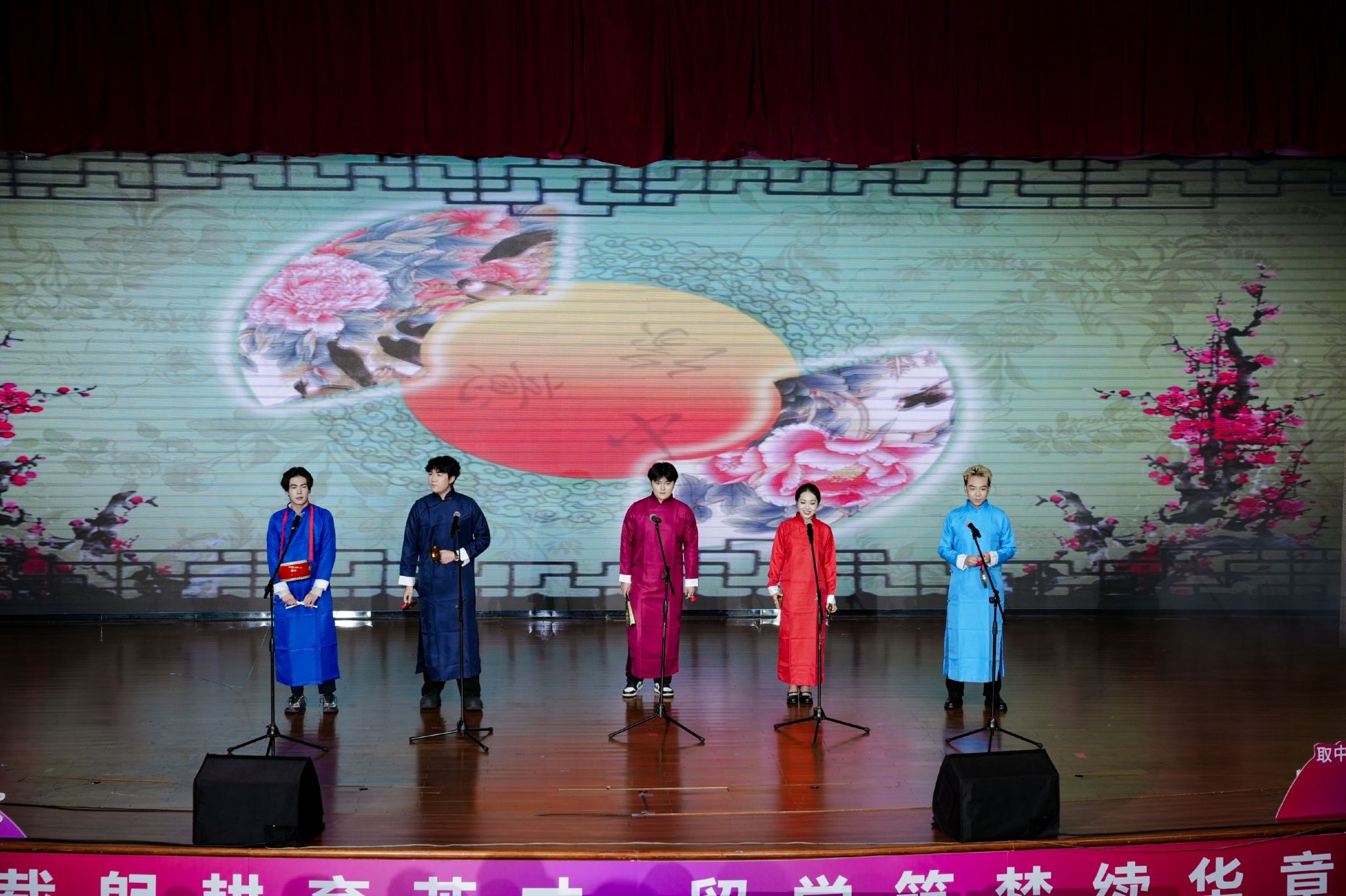 三句半《廿载风华 融通世界》以诙谐精炼的语言,从校园生活、师生情谊到学术成长,娓娓道出学院二十年来坚持国际化办学与立德树人的初心坚守。