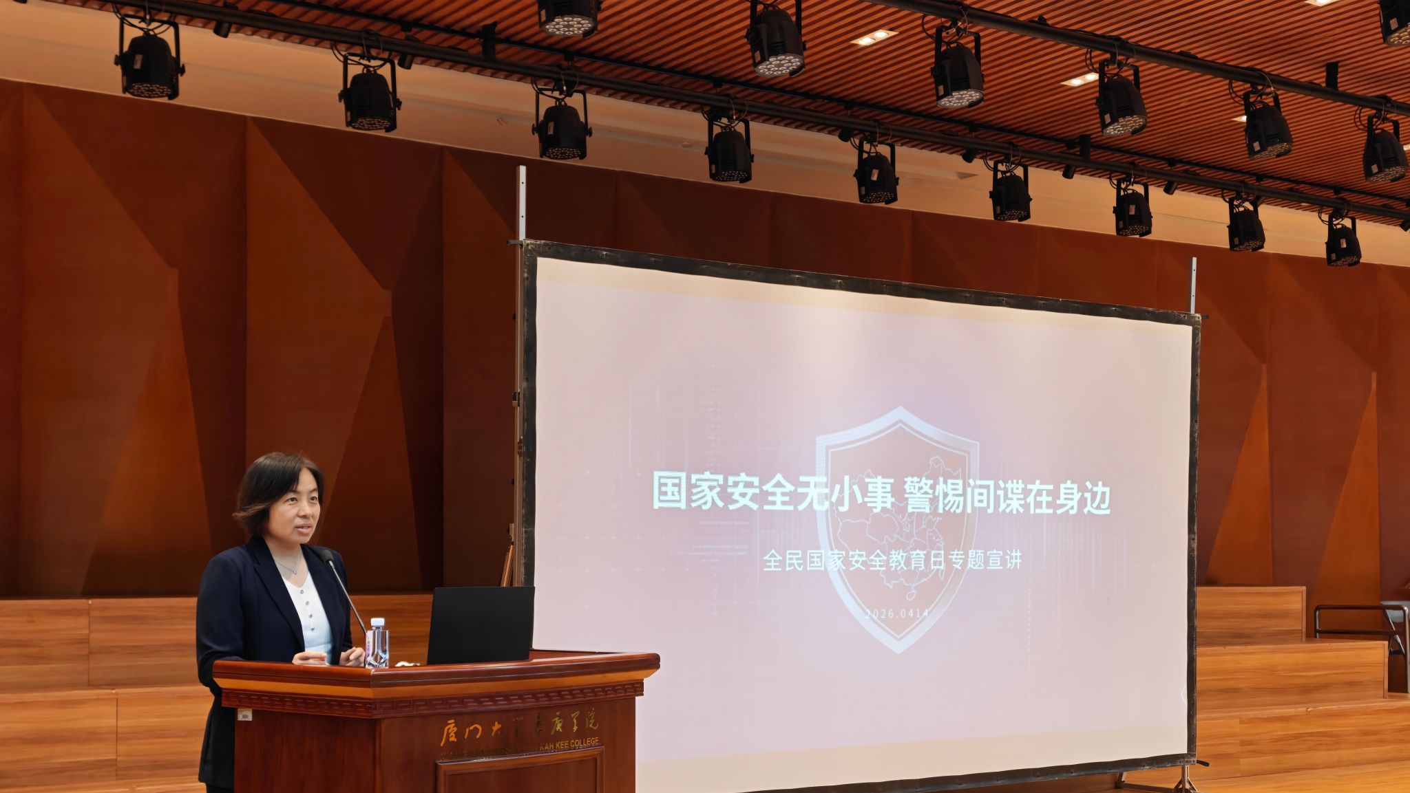 为深入贯彻总体国家安全观,切实提升学院师生的国家安全意识和风险防范能力,4月14日中午,国际学院在漳州校区主3号楼音乐厅开展《国家安全无小事,警惕间谍在身边》全民国家安全教育日专题讲座。本次讲座由漳州开发区人民防线办共同举办,邀请叶警官担任主讲。漳州开发区党委办公室、国安办主任郑祺出席讲座,相关工作人员、漳州校区保卫办、师生代表参加学习。讲座由学院党委副书记马向华主持。