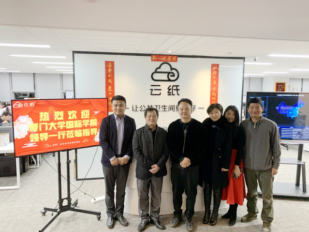 座谈中,廖宇星校友对学院领导一行的来访表示热烈的欢迎,对母校多年的教育、培养表示感谢,并介绍了公司的发展历程、企业架构、主营业务及战略规划。该公司立足“新媒体·新经济·新未来”,是一家致力于应用“物联网+标准化”软硬件服务升级完善公共卫生服务行业的企业。其云纸项目成立于2017年,硬件端依托于智能终端,打造智慧化公共空间,实现数字化管理,拓展场景功能。软件端专注于大数据和精准广告投放,在人工智能和大数据领域深耕,实现流量价值最大化运营。目前,云纸项目已覆盖国内473个城市,铺设取纸设备7万多台,累计服务人次1.03亿人次,提供取纸服务超过2亿次。