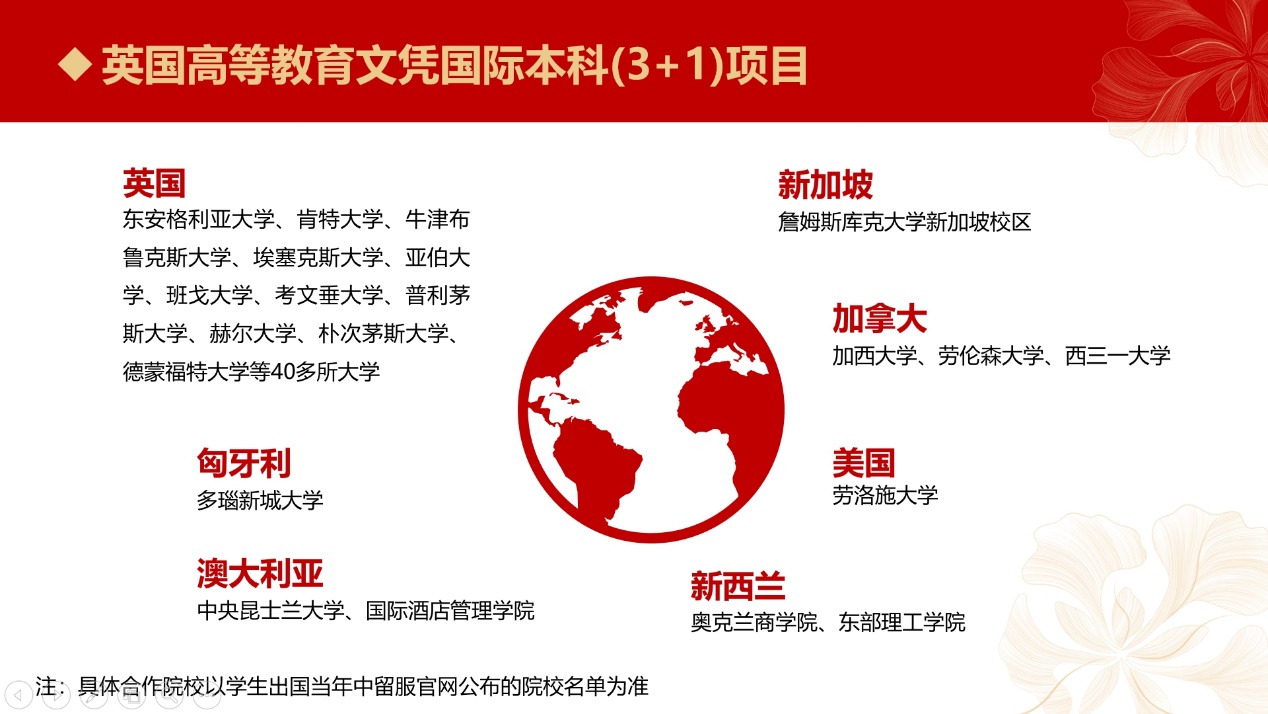 对接英、美、澳、加、新加坡等多个国家共51所大学: