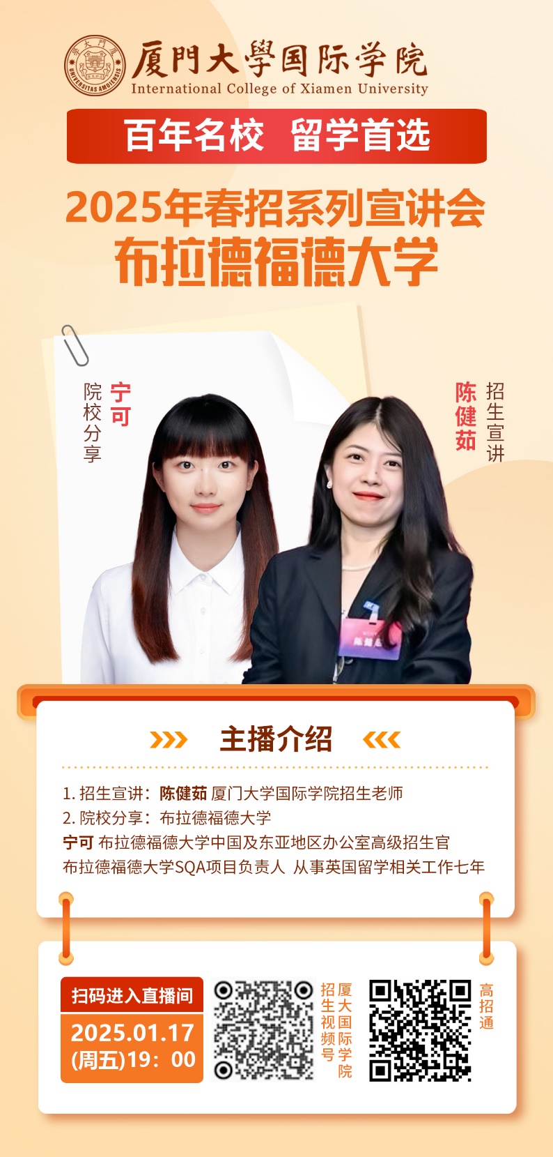 招生宣讲 主讲人:厦门大学国际学院招生老师 陈健茹